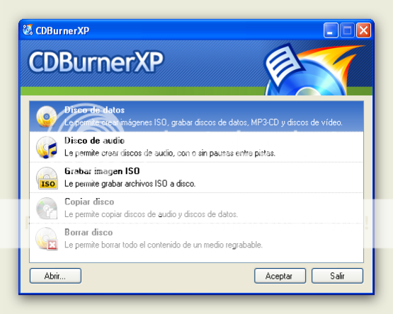 CDBurnerXP es una aplicación gratuita para grabar CDs y DVDs, incluyendo Blu-Ray y HD-DVDs. También incluye la posibilidad de grabar y crear ISOs, así como una interfaz multilenguaje. Todos, incluso las empresas, se puede utilizar de forma gratuita. No se incluyen los componentes maliciosos similares o adware.