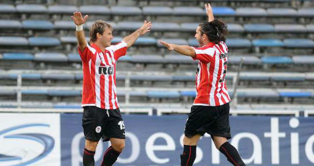 La ''Gata'' celebra el tanto del ''Pincha''.